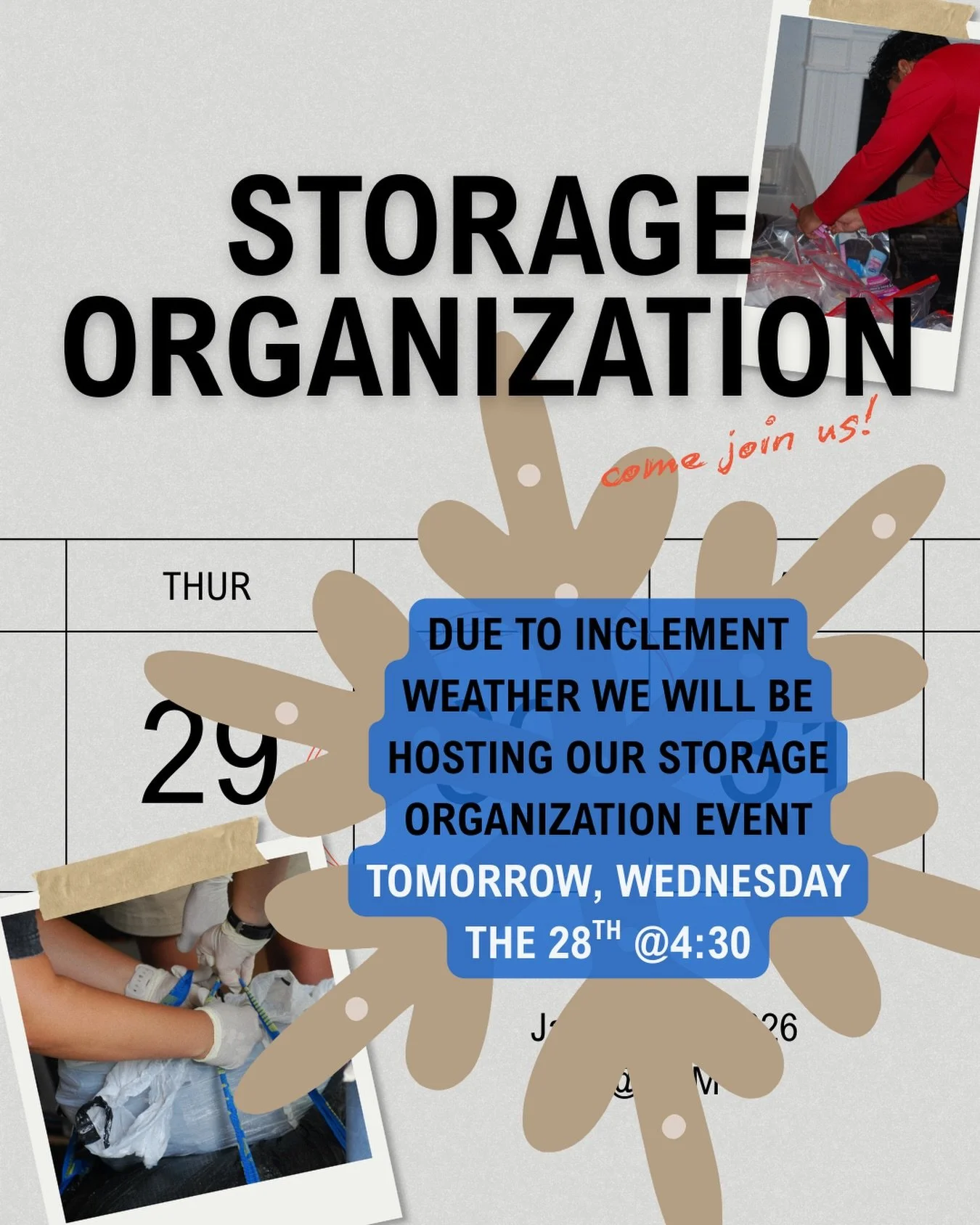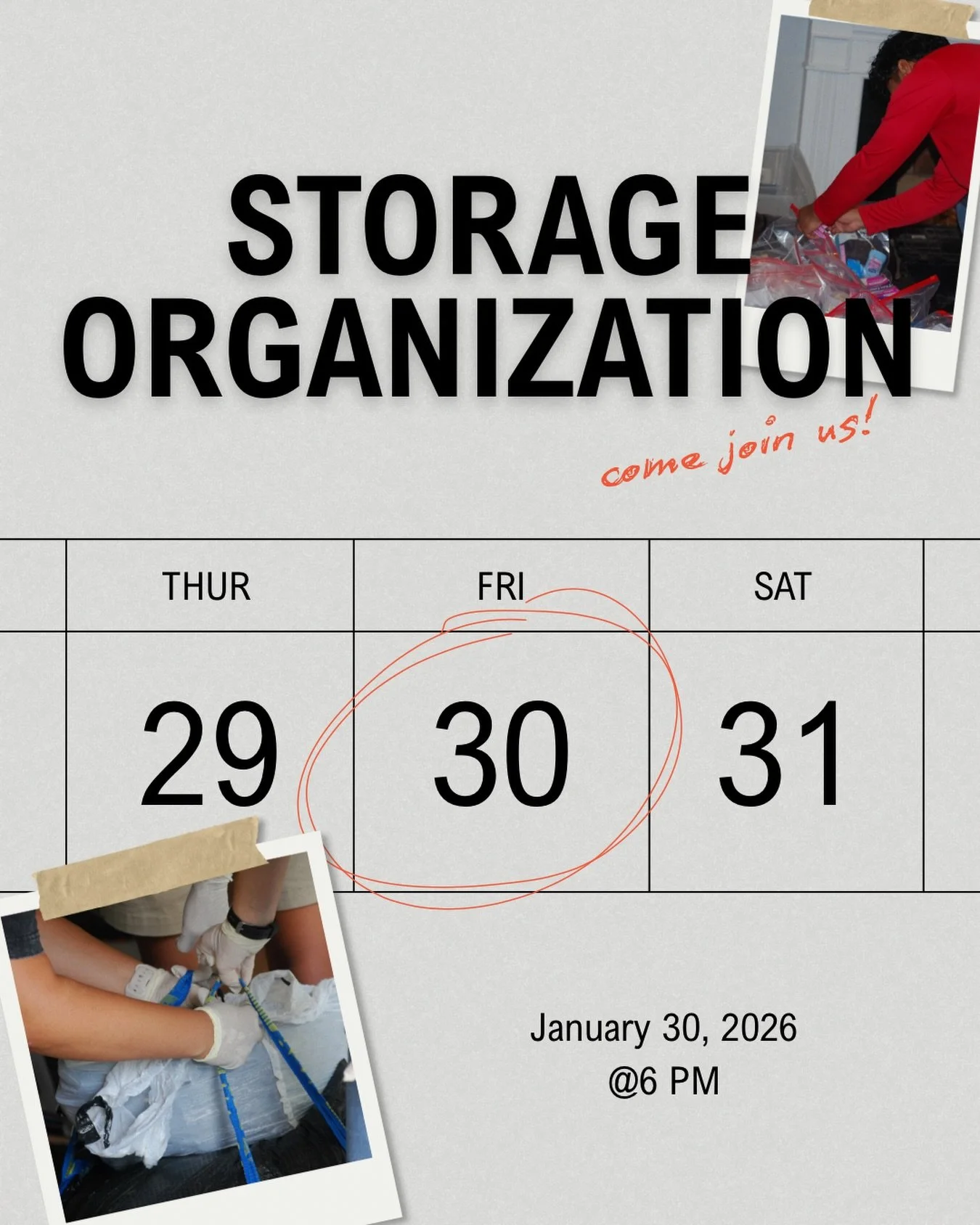 Help us create a well-organized and efficient space to better serve our community. We’re looking for volunteers to assist with sorting, labeling, and arranging donations in our storage area. Your efforts will ensure that essential resources like clothes, food, and household items are easy to access during our community events.